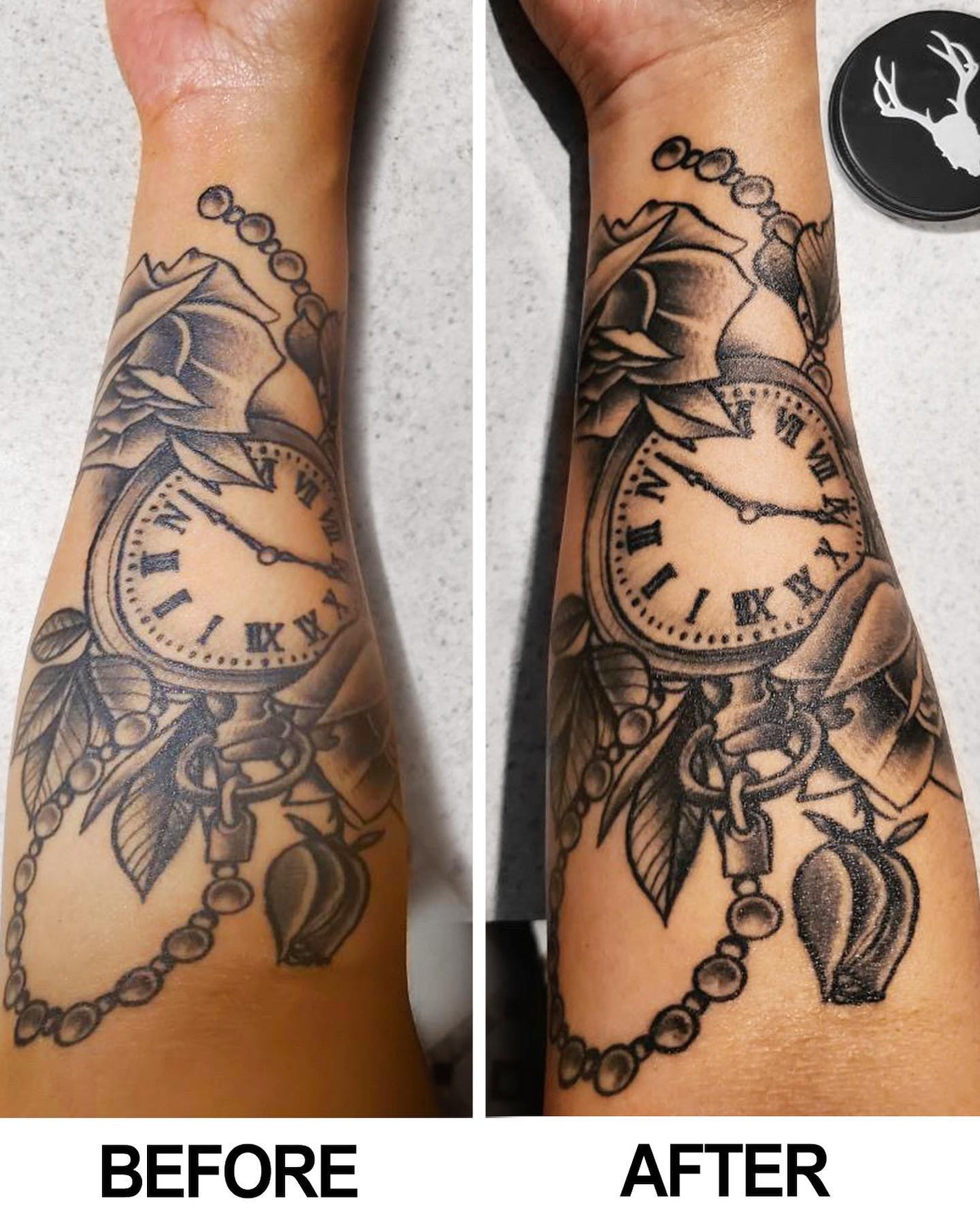 You only need a small amount once or twice a day. It absorbs quickly, leaves no greasy residue, and keeps your tattoos hydrated all day.